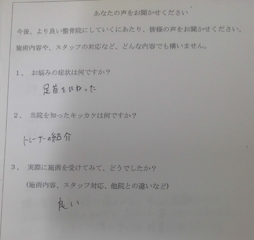 足首をひねった